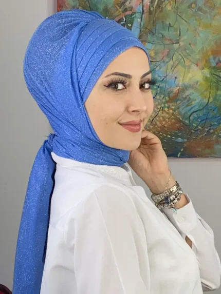 Dilber Model Çok Drapeli Üçlü Taş Detaylı Şal – Bebe Mavisi