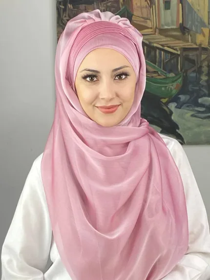 Topkapı Çapraz Drapeli Fransız Şifon Hazır Şal – Uçuk Pembe