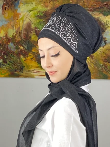 • Sultan Model Simli Büzgülü Dış Bone - Siyah ₺375.00