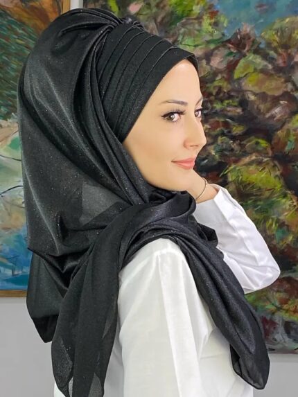 • Sultan Model Simli Büzgülü Dış Bone - Siyah ₺375.00