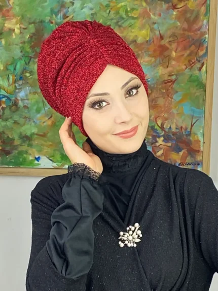 • Sultan Model Simli Büzgülü Dış Bone - Bordo ₺375.00