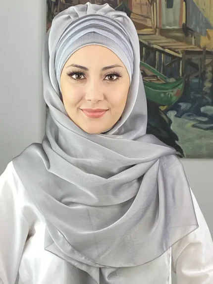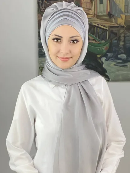 Topkapı Çapraz Drapeli Fransız Şifon Hazır Şal – Açık Gri
