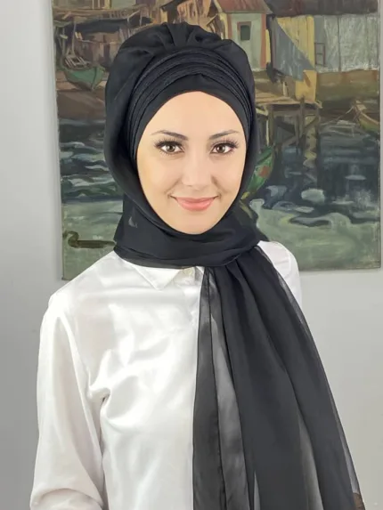 • Sultan Model Simli Büzgülü Dış Bone - Siyah ₺375.00