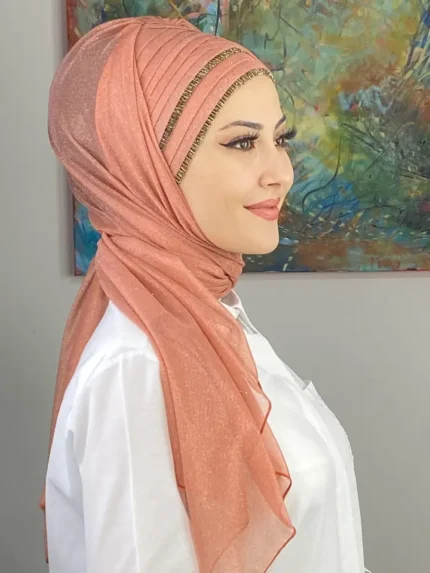 Dilber Model Çok Drapeli Sim Detaylı Şal – Somon