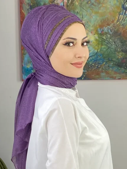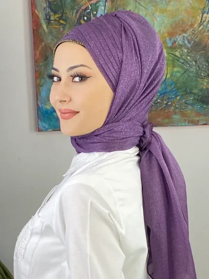 Dilber Model Çok Drapeli Sim Detaylı Şal – Mor