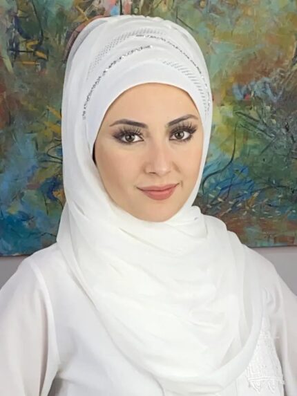 Simli Boncuk Detaylı El İşi Drapeli Şal – Beyaz
