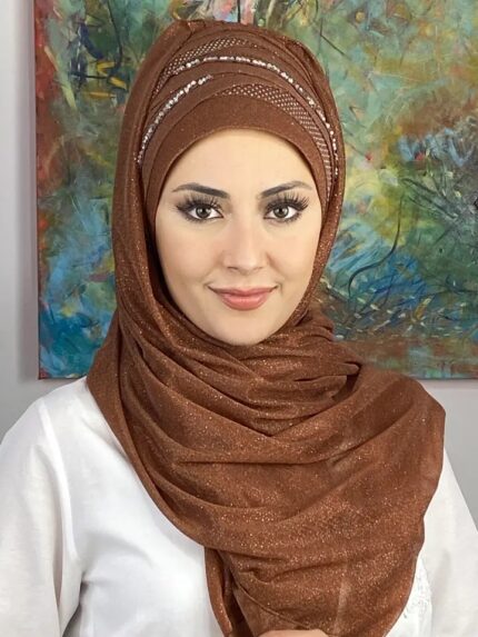 Boncuk Detaylı Drapeli Bone Şal – Koyu Sütlü Kahve