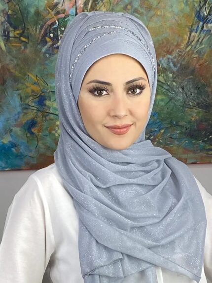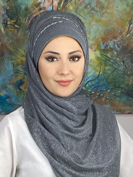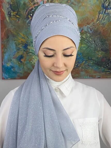 • Vintage Model Taşlı Abiye Atkılı Bone Şal - Gri Vintage Model Taşlı Abiye Atkılı Bone Şal - Gri ₺425.00
