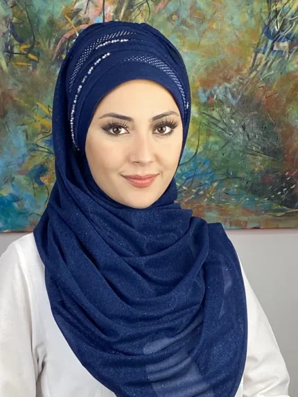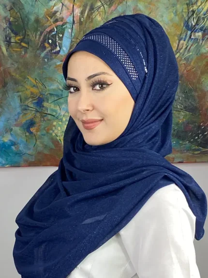 • Sultan Model Simli Büzgülü Dış Bone - Lacivert ₺375.00