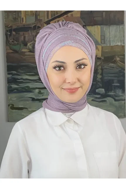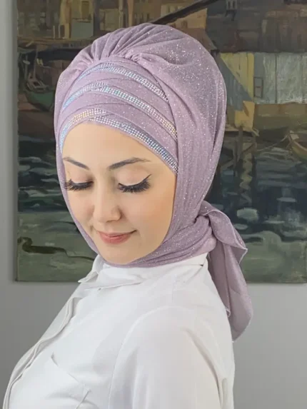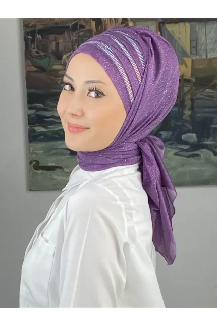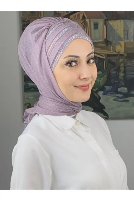 Lüks Topkapı Model Taşlı Simli Kısa Abiye Hazır Şal – Leylak