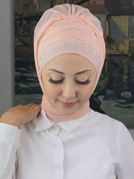 Lüks Topkapı Model Taşlı Simli Kısa Abiye Hazır Şal – Açık Somon