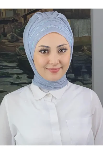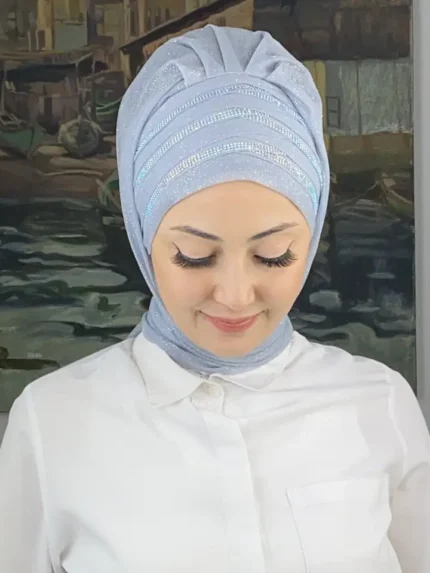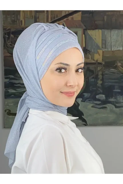 Lüks Topkapı Model Taşlı Simli Kısa Abiye Hazır Şal – Bebe Mavisi
