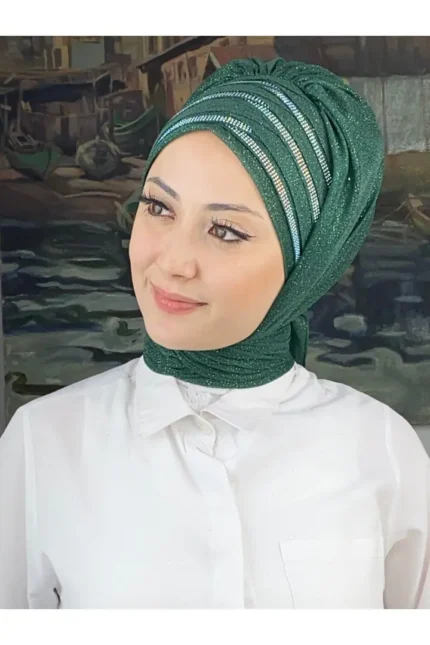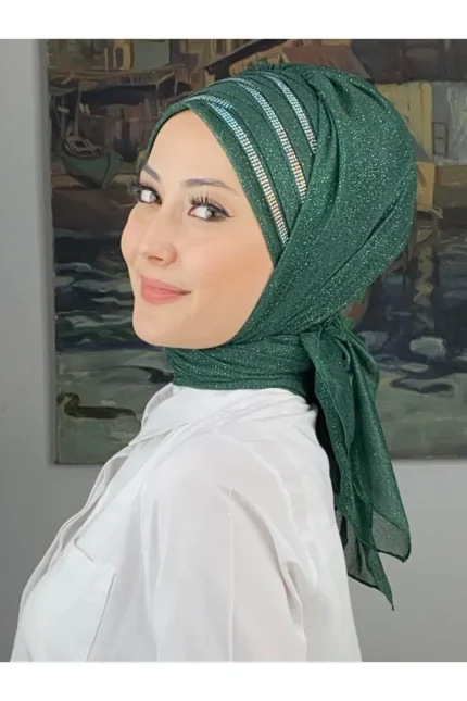 Lüks Topkapı Model Taşlı Simli Kısa Abiye Hazır Şal – Zümrüt Yeşili