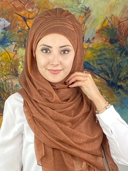 Saray Model Fransız Şifon Drapeli Simli Hazır Şal – Sütlü Kahve
