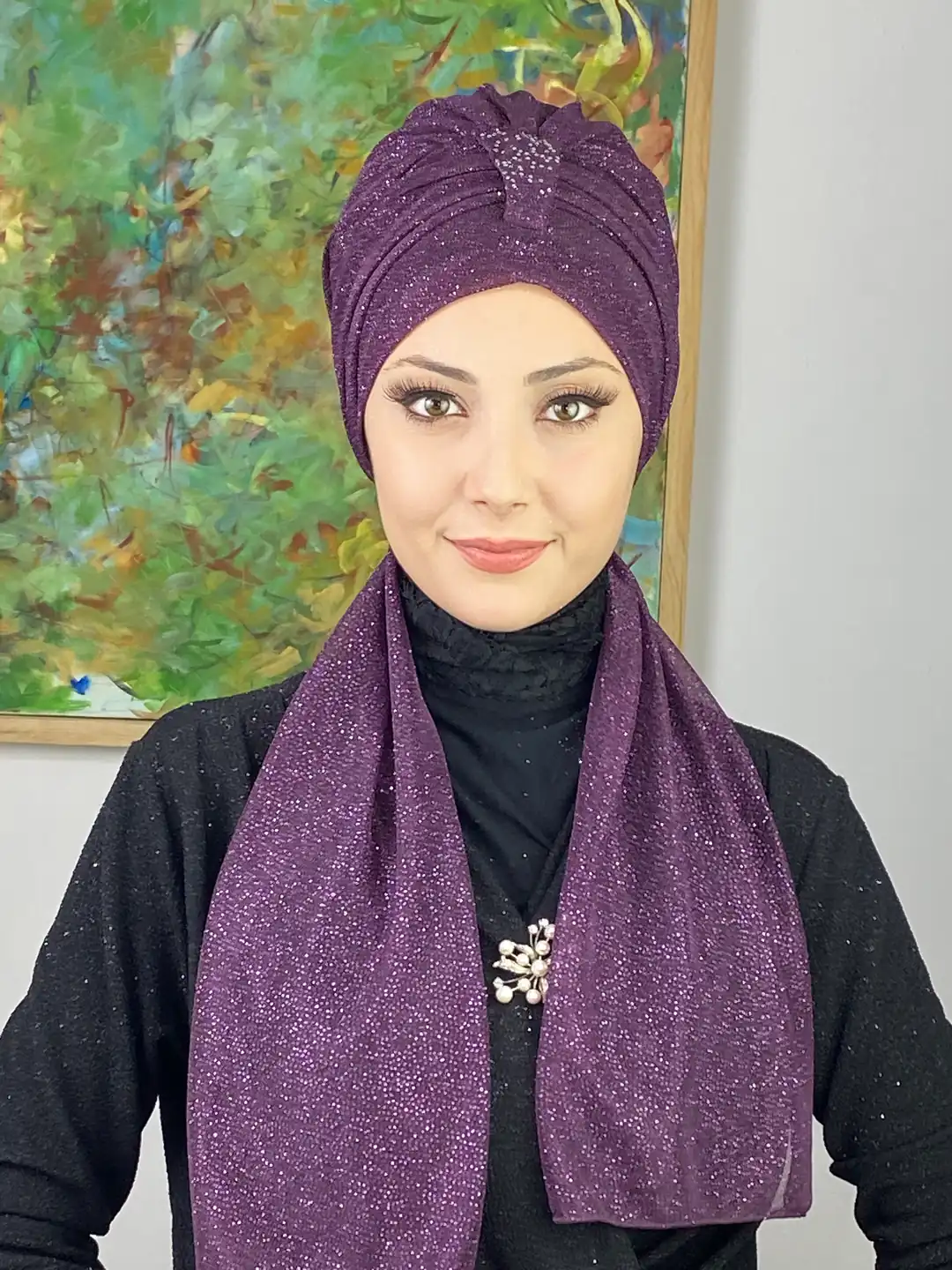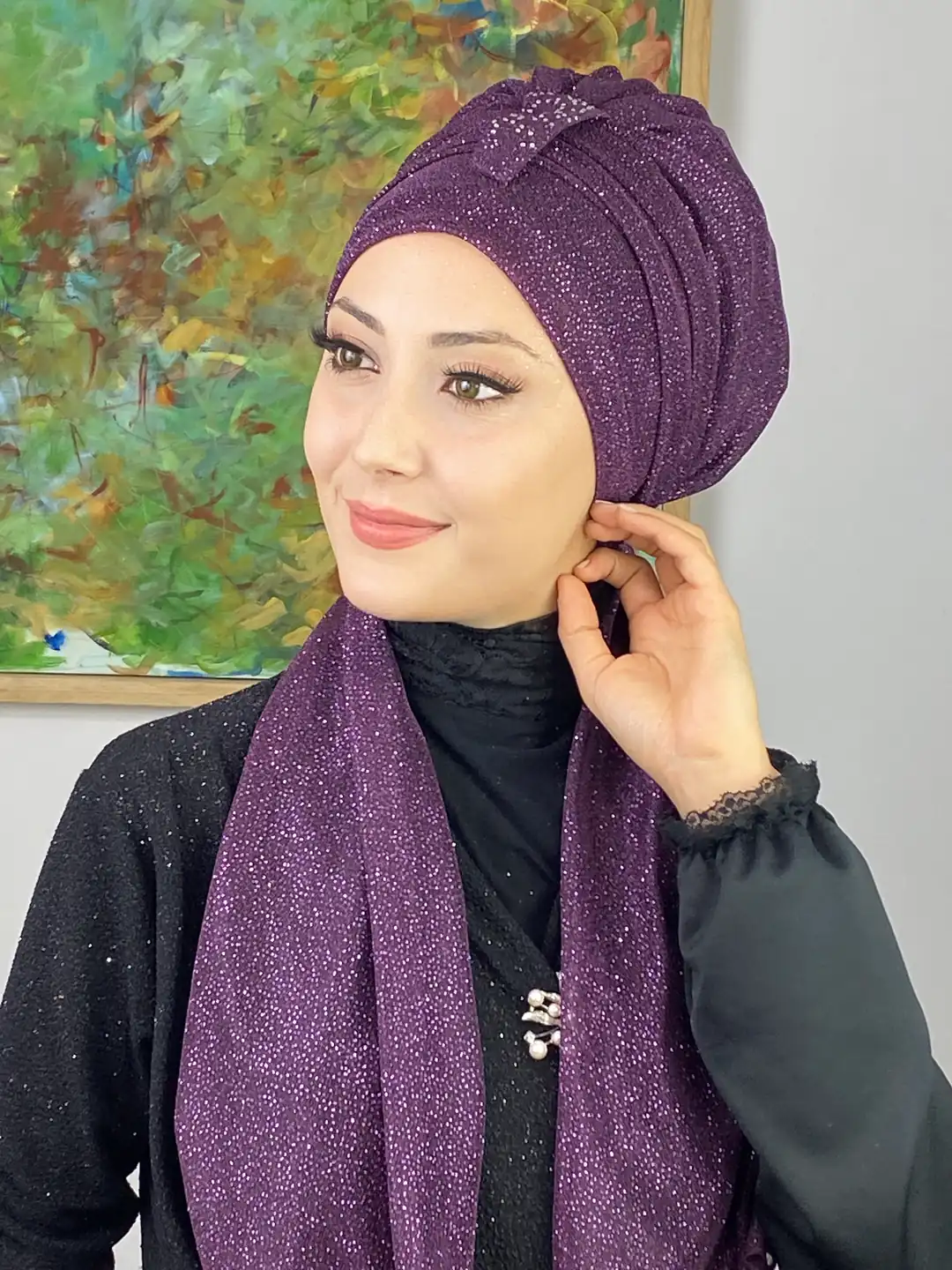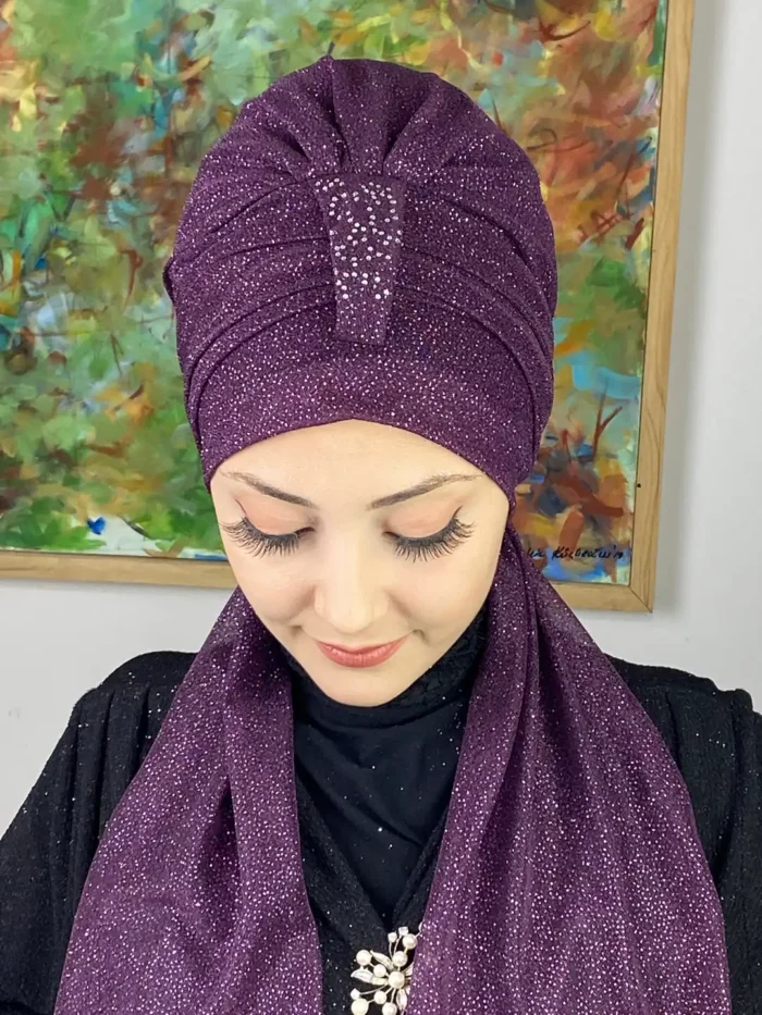 Hürrem Tek Biritli Simli Atkılı Bone – Mor