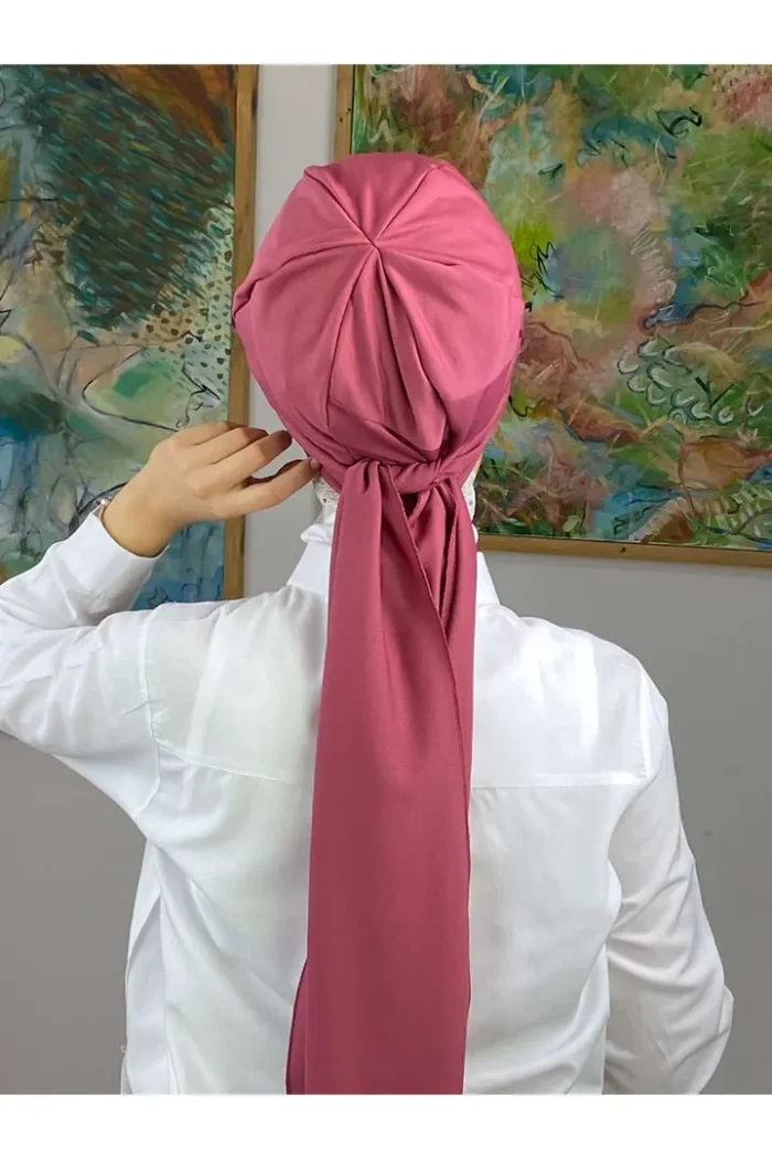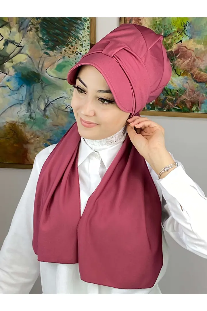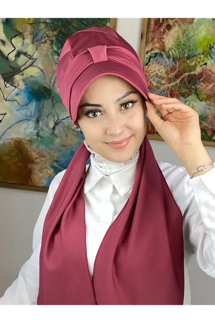 Açık Vişne Rengi Kendinden Fularlı Şapka, zarif tasarımı, rahat kullanımı ve şıklığı ile her tesettürlü kadının dolabında yer alması gereken bir aksesuardır. Hemen şimdi bu şapkayı edinin ve her kombinle mükemmel bir uyum yakalayarak stilinizi tamamlayın.