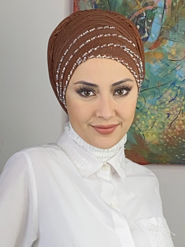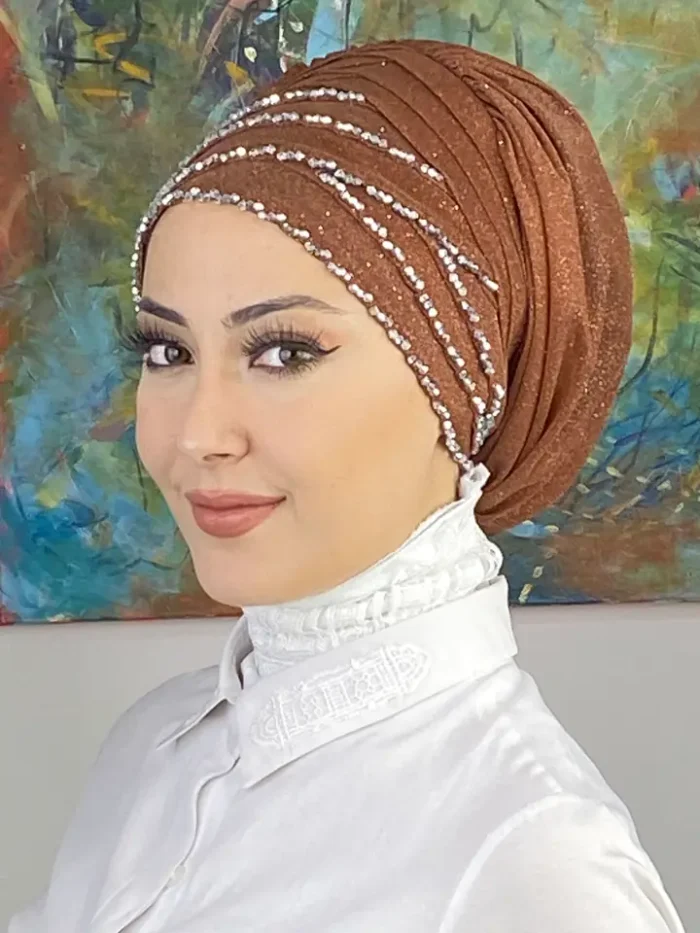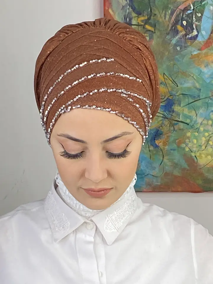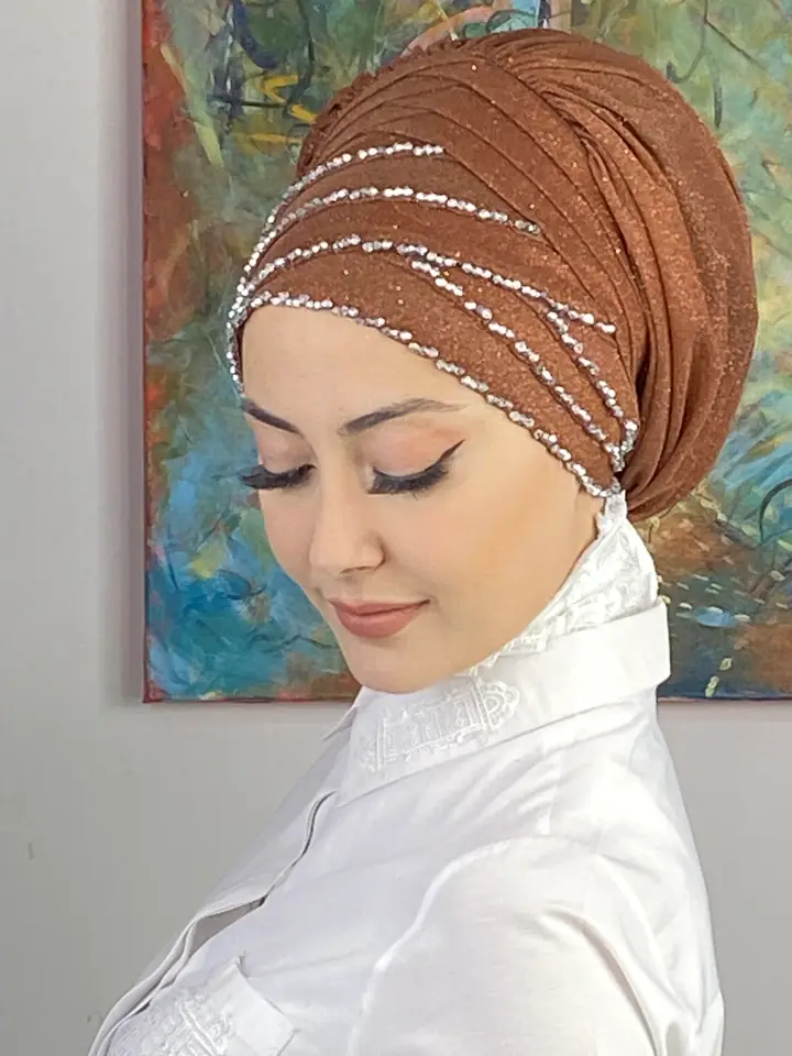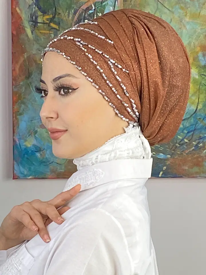 Boncuk Detaylı Drapeli Bone Şal – Koyu Sütlü Kahve