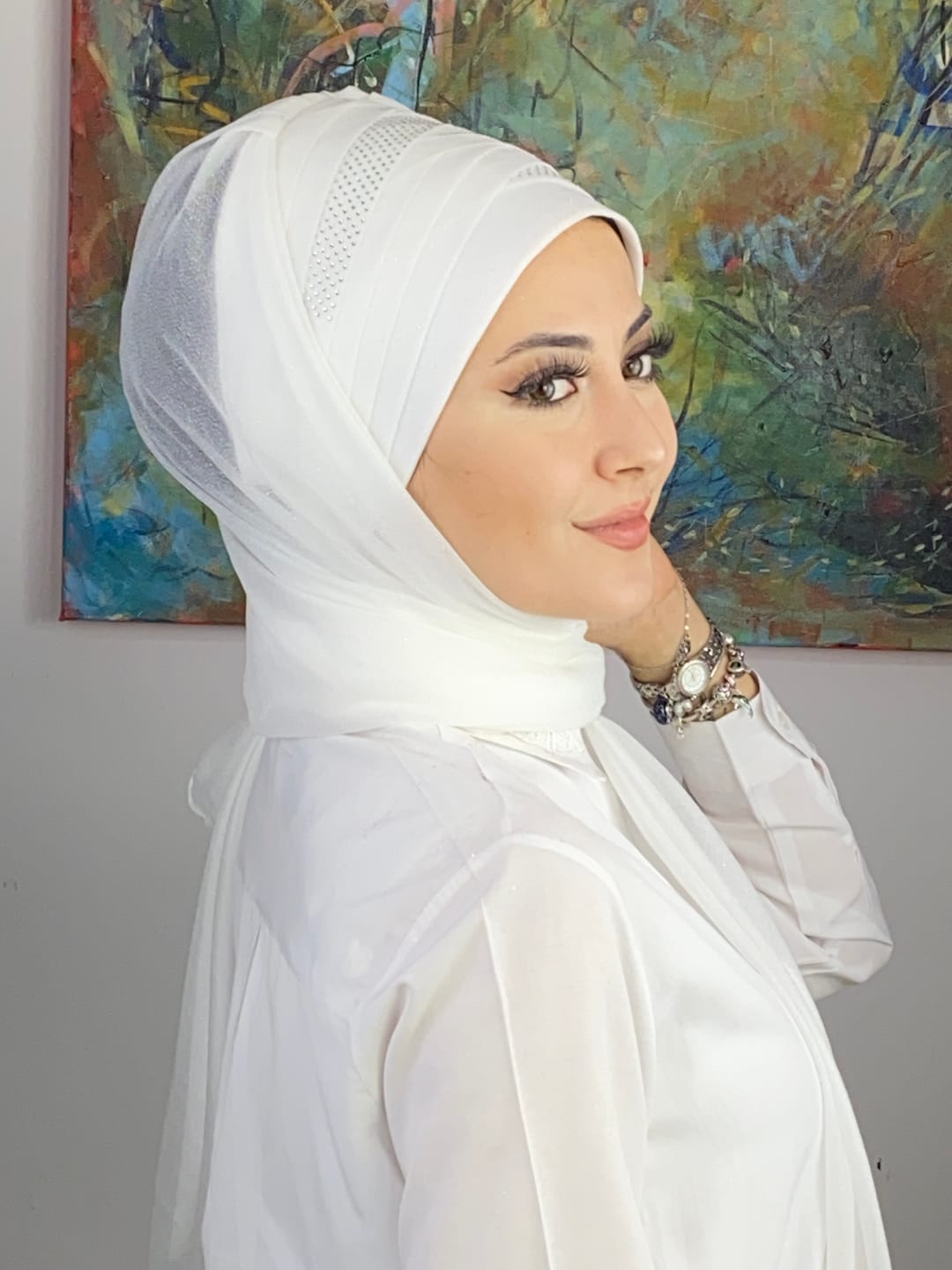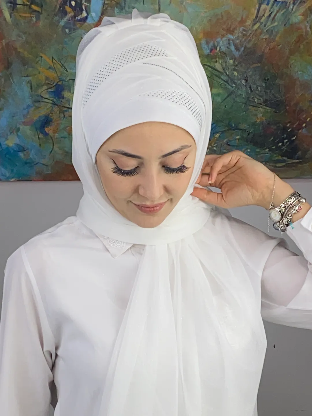 Beyaz şal, aksesuar seçimine göre tarzını tamamen değiştirme fırsatı sunar: