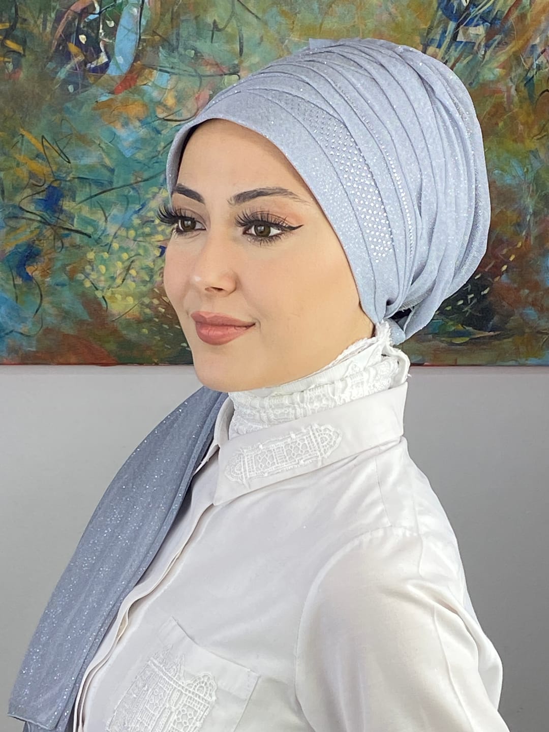 Drapeli şal tasarımları, özellikle yüz formunu dengeli gösterme açısından mükemmel bir çözümdür. Gri tonun yumuşak ve pürüzsüz dokusu çene hattını daha ince gösterirken, boncuklu detaylar yüz çevresine zarif bir ışıltı ekler. Bu ürün, hem yuvarlak hem oval hem de köşeli yüz tipleriyle doğal bir uyum yakalar.