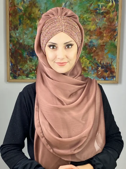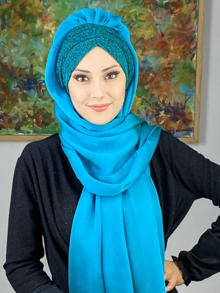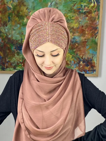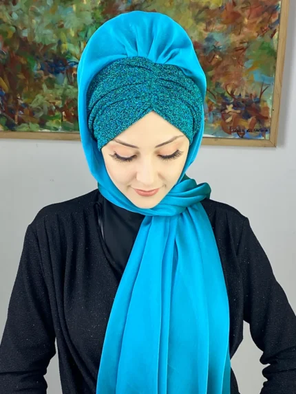 Başörtüsü kullanımında konfor ve şıklığı aynı anda yaşamak isteyenler için geliştirilen bu şal, pratik kullanımı ve formu ile başta kaymadan gün boyu kusursuz duruş sağlar. Böylece ışıl ışıl görünümünden ödün vermeden rahatlığı doyasıya deneyimlersin.