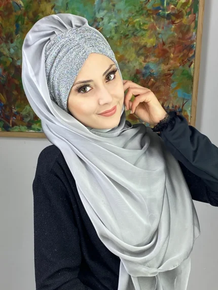 Koyu gri, modern şıklığın en güçlü temsilcilerinden biridir. Boncuklu Drapeli Simli Şal – Koyu Gri; abartısız ama güçlü bir stil arayan kadınlara özel tasarlanmıştır. Işıltılı sim detayları, koyu tonla birlikte etkileyici bir kontrast sunar.