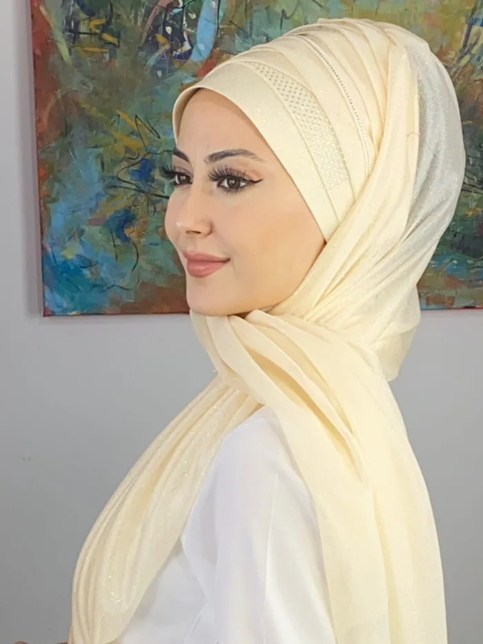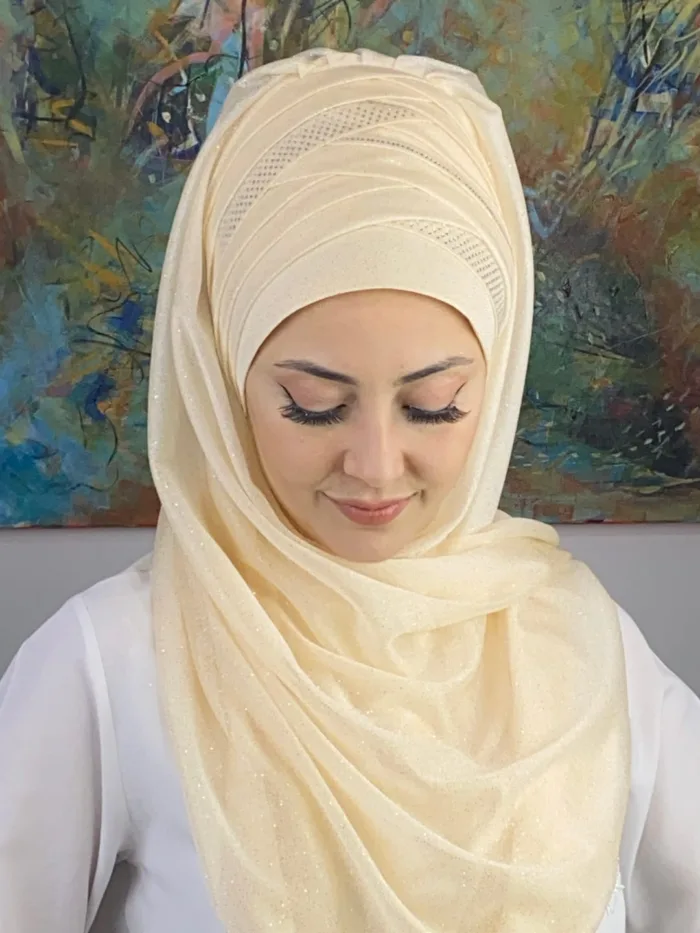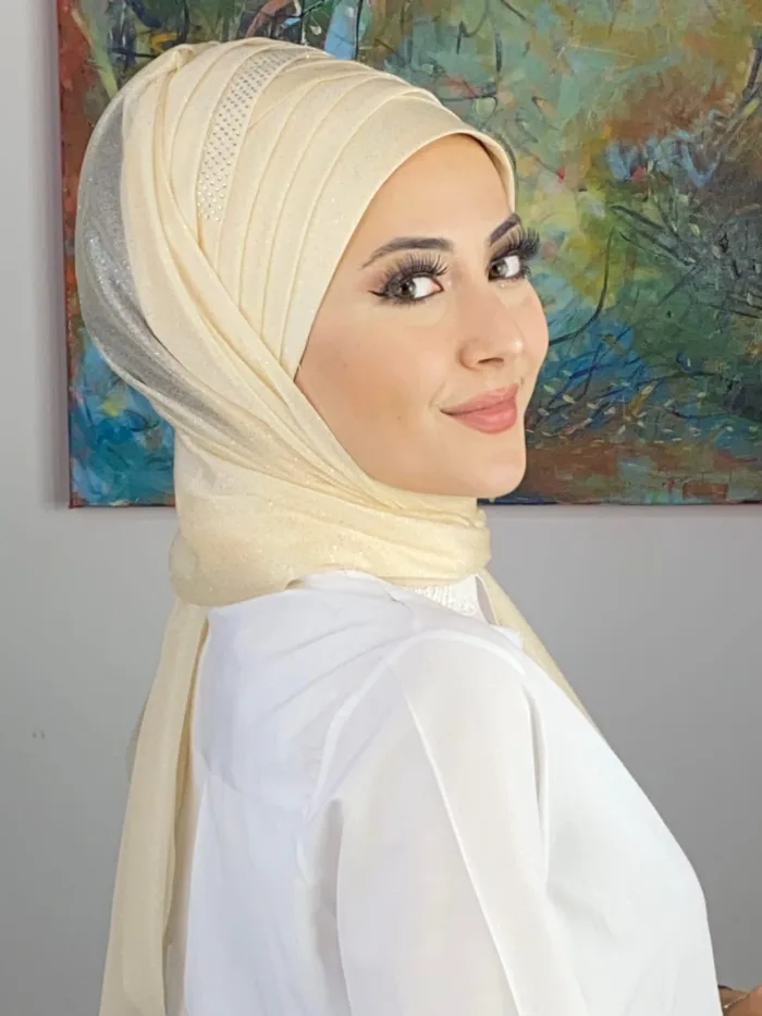 Krem, beyazın en sıcak hâlidir. Bu renk, hem abiye hem de daha sade kombinlerde zarif bir geçiş sağlar. Boncuklu Drapeli Simli Şal – Krem modeli, doğal ve soft görünümü ile her ten rengine uyum sağlar. Simli yüzeyi ve boncuk işlemeleri sayesinde kadar sade, o kadar gösterişli bir duruş sunar.