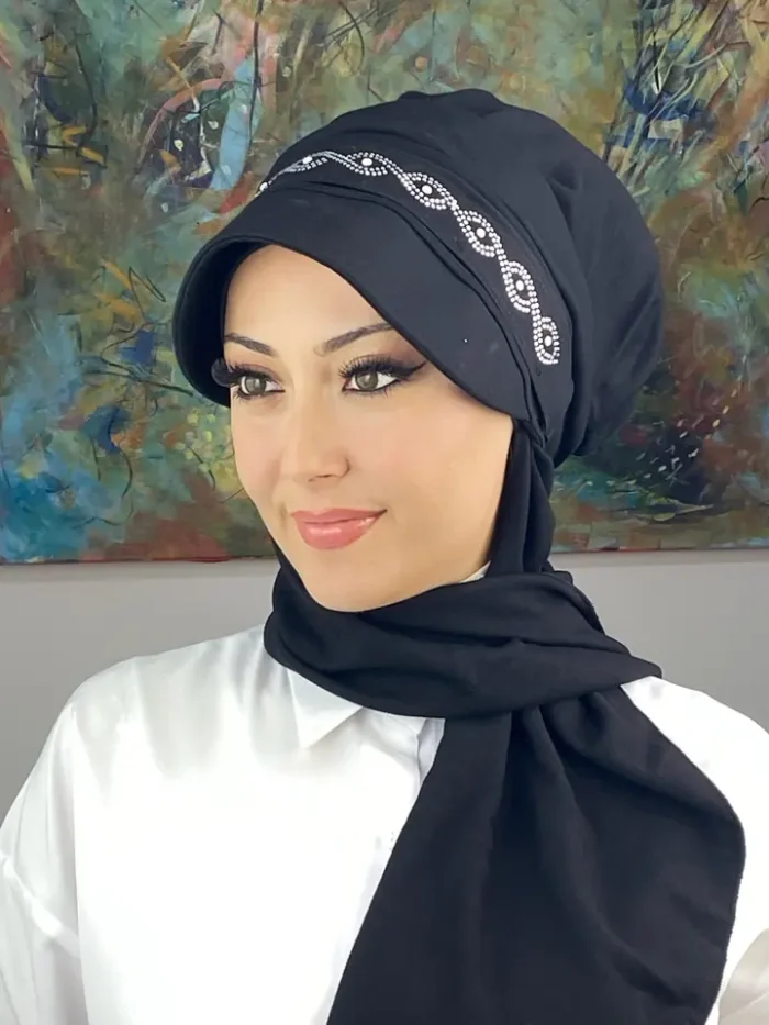 Yılan detayının verdiği dinamizm ve boncukların parlaklığı, bu şapkayı sıradan bir aksesuardan çok daha fazlası yapar. Şapkanın tasarımı, zarif ve şık olmasının yanı sıra, stiline özgün bir dokunuş eklemek isteyenler için ideal bir seçimdir. Siyahın etkileyici havası, boncuklarla birleşerek şapkayı daha da dikkat çekici kılar.