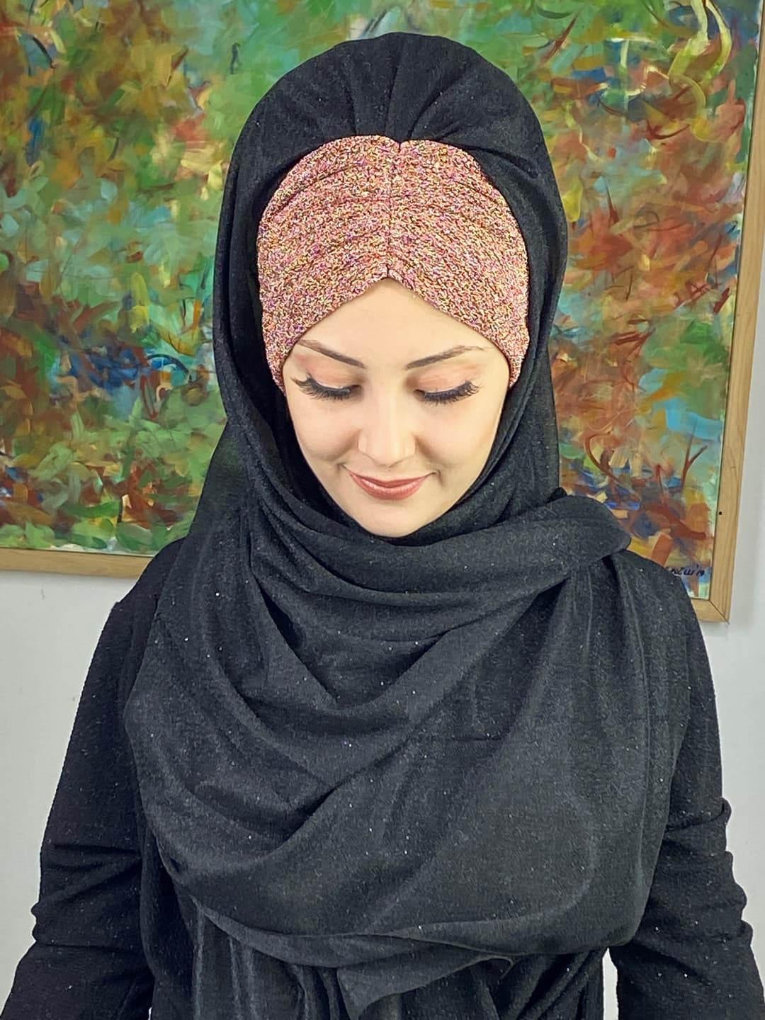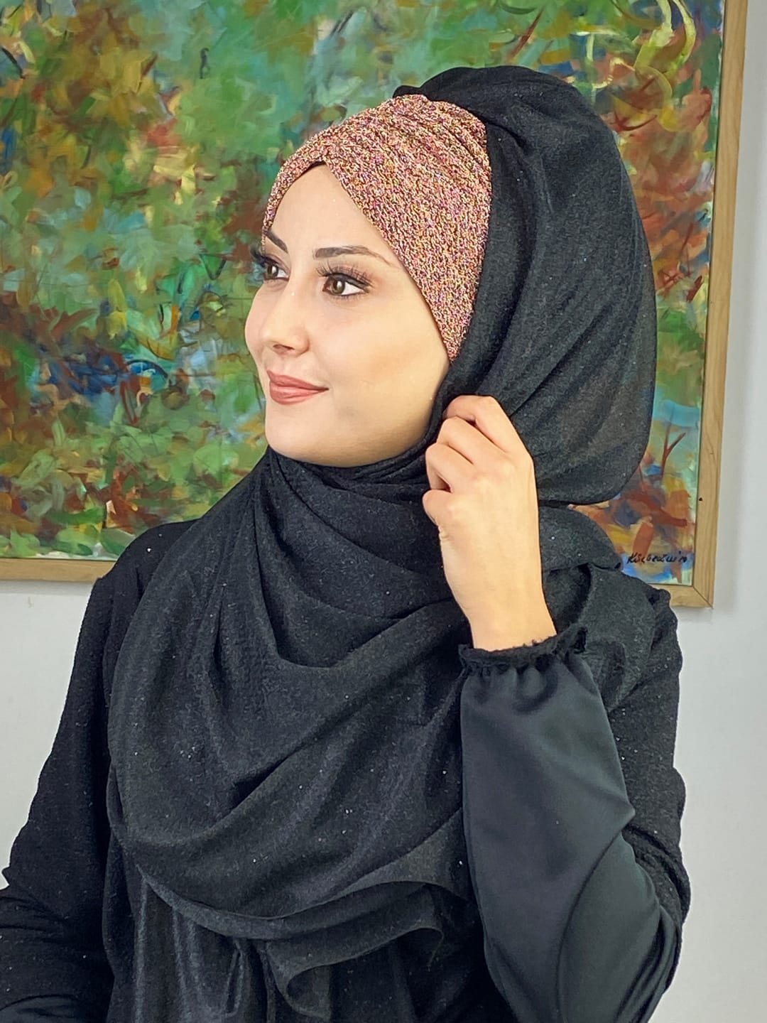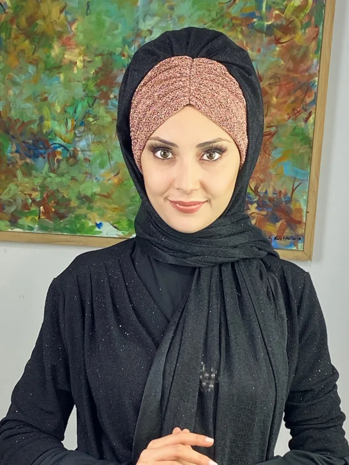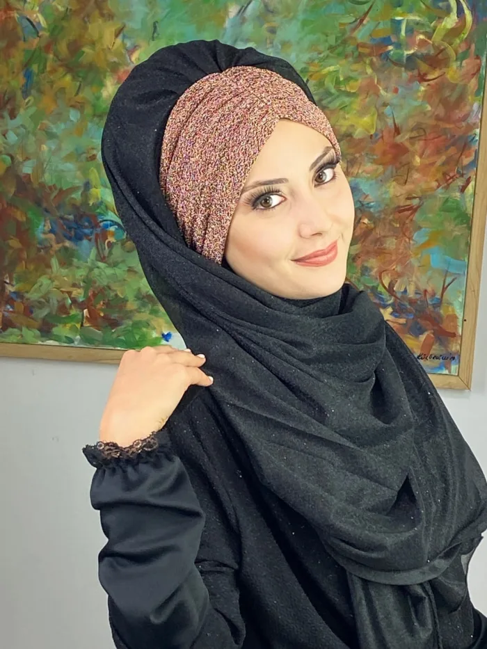 Çift Renkli Sultan Model Simli Şifon Büzgülü Şal – Siyah / Bakır ⚫🔥