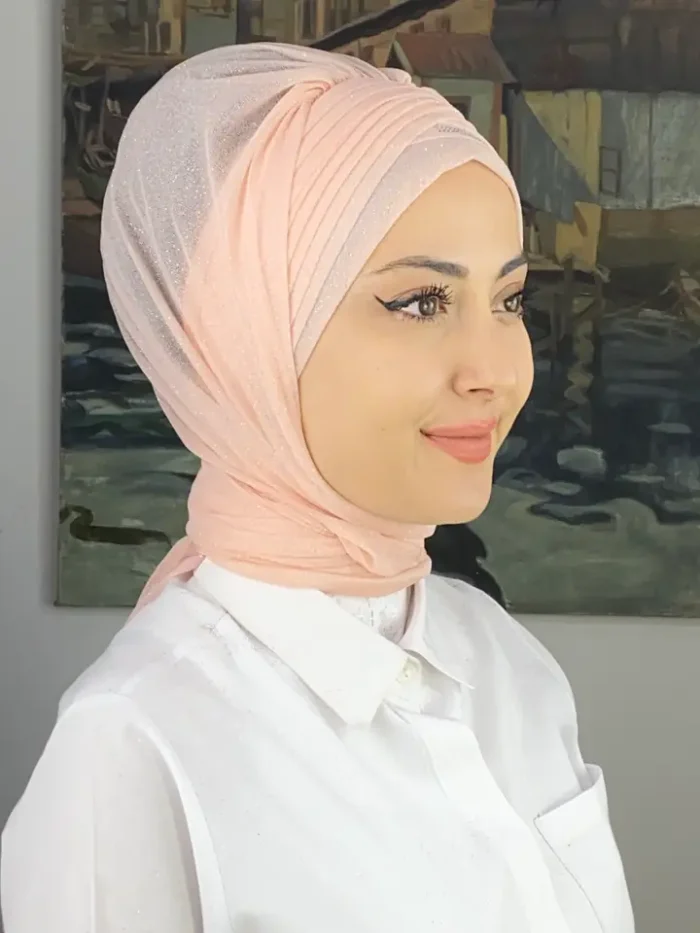Açık somon, zarafeti ve sıcaklığıyla en sevilen pastel tonlardan biridir. Çırağan Çok Drapeli Gümüş Taşlı Simli Şifon Hazır Şal – Açık Somon, romantik duruşu ve modern çizgileriyle göz kamaştırıcı bir şıklık sunar.