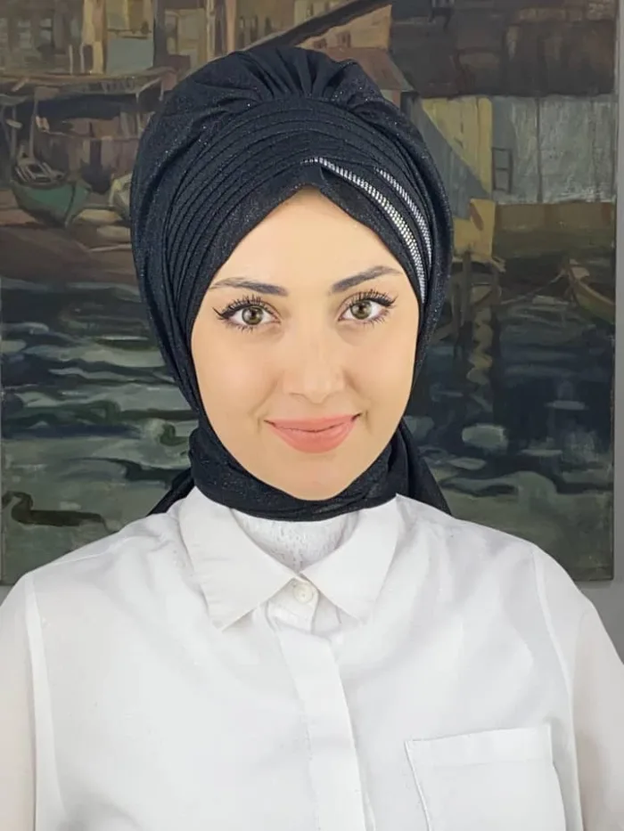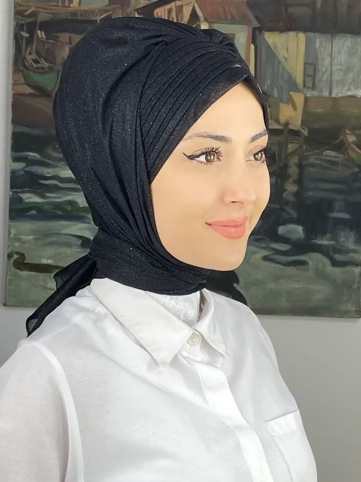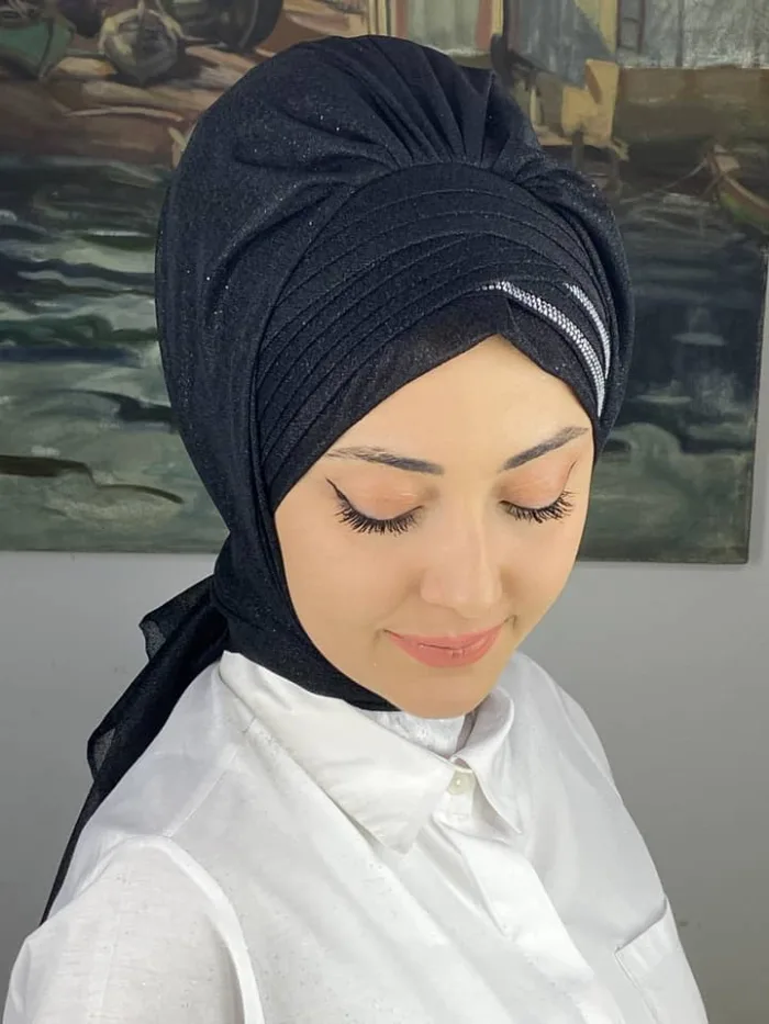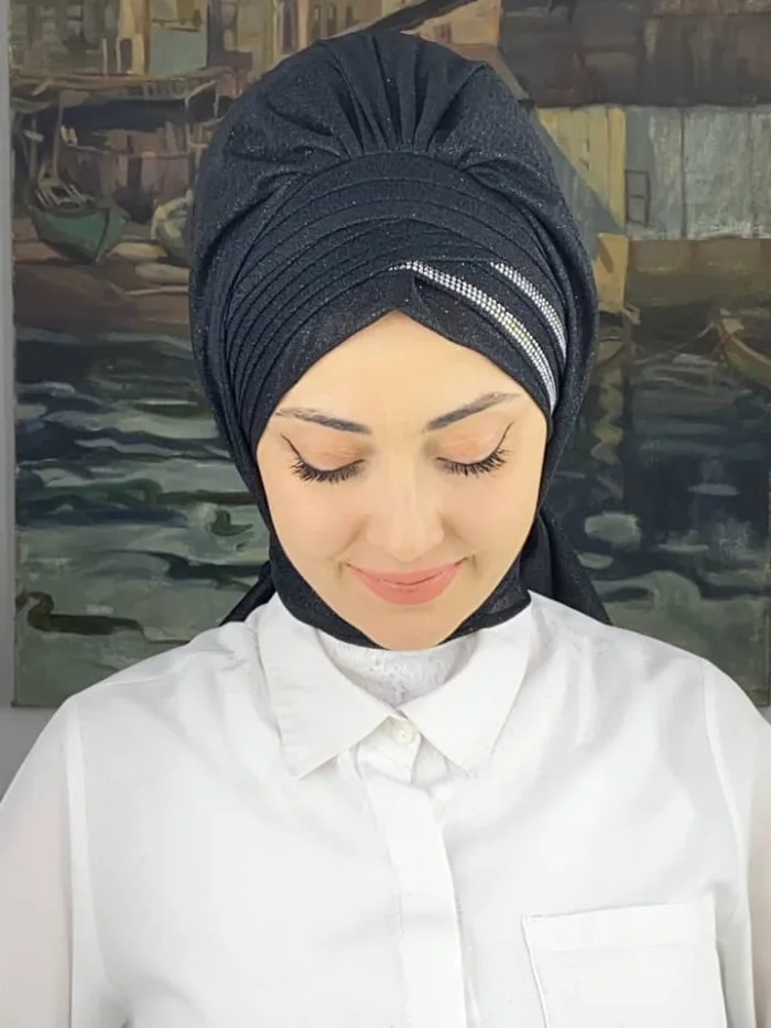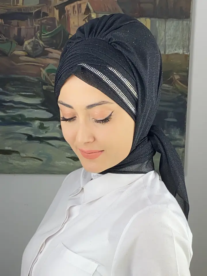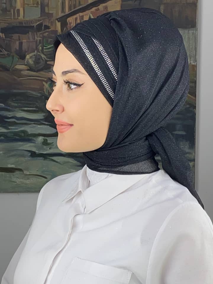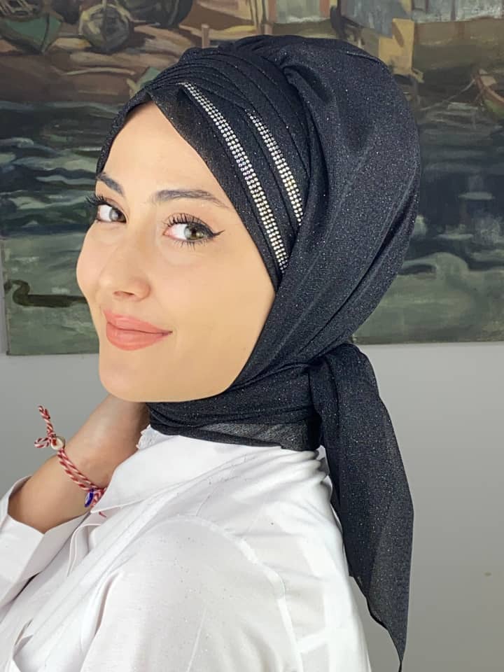 Çırağan Çok Drapeli Gümüş Taşlı Simli Şifon Hazır Şal – Koyu Gri