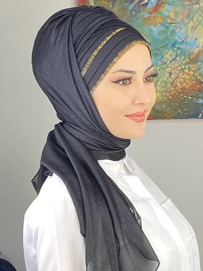 Koyu gri, modern şıklığın en sade temsilcisidir. Dilber Model Çok Drapeli Sim Detaylı Şal – Koyu Gri, simli şifon kumaşın ışıltısını zarif bir tonla birleştirerek sofistike bir görünüm sunar.