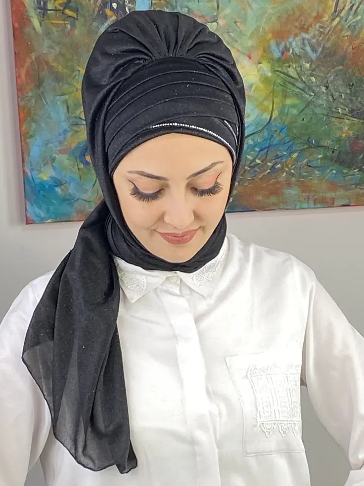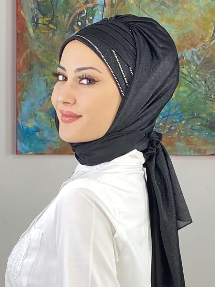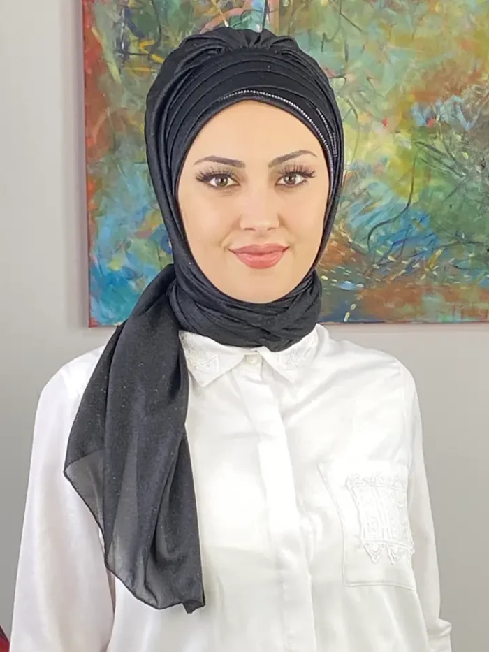 Koyu gri, asil ve modern bir ton olarak her dönemin favorisi olmuştur. Dilber Model Çok Drapeli Üçlü Taş Detaylı Simli Şal – Koyu Gri, bu zamansız rengi üç taşın zarafetiyle harmanlayarak güçlü ama sade bir duruş kazandırır.