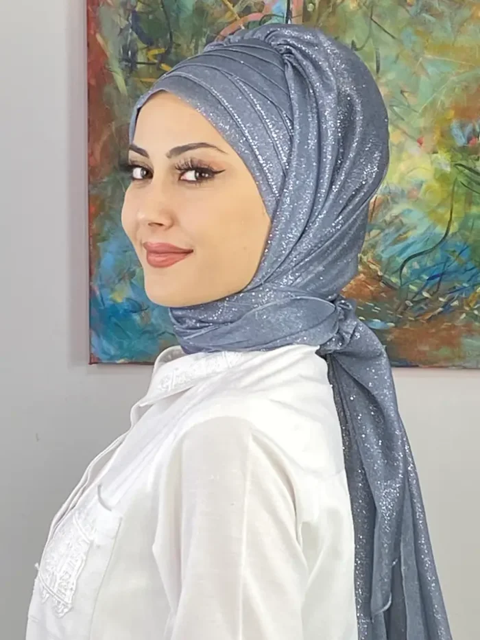 Gri, sade ama güçlü bir duruşun rengidir. Dilber Model Çok Drapeli Üçlü Taş Detaylı Şal – Gri, minimalizmi şıklıkla birleştirir. Üç taşın parıltısı, gri tonun dinginliğine zarif bir kontrast kazandırır.