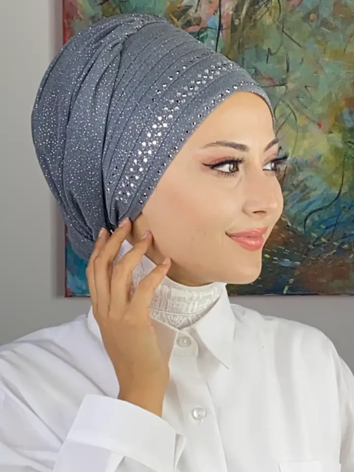 Modern ve Zarif Tasarım: Gümüş hologram taşları ve üç şeritli tasarım, şalınıza şıklık katar.