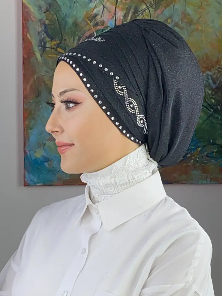 Hayalinizdeki şıklığı yakalamak için Gümüş Taşlı Kuşgözü Model Çapraz Detaylı Simli Şifon Bone Şal – Siyah‘ı hemen sipariş edin!