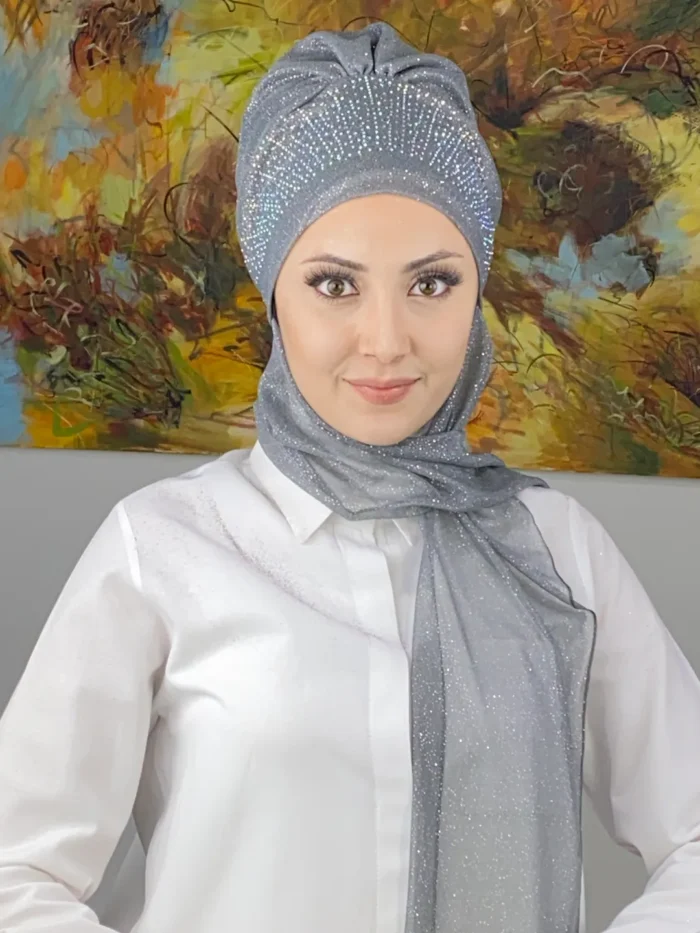 🛍️ Şimdi sepetinize ekleyin — gri tonunun zarafetini ışıltıyla yaşayın!