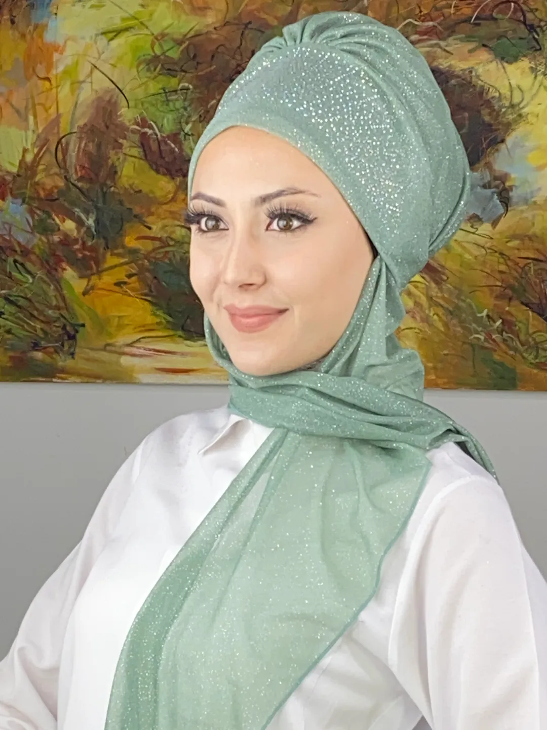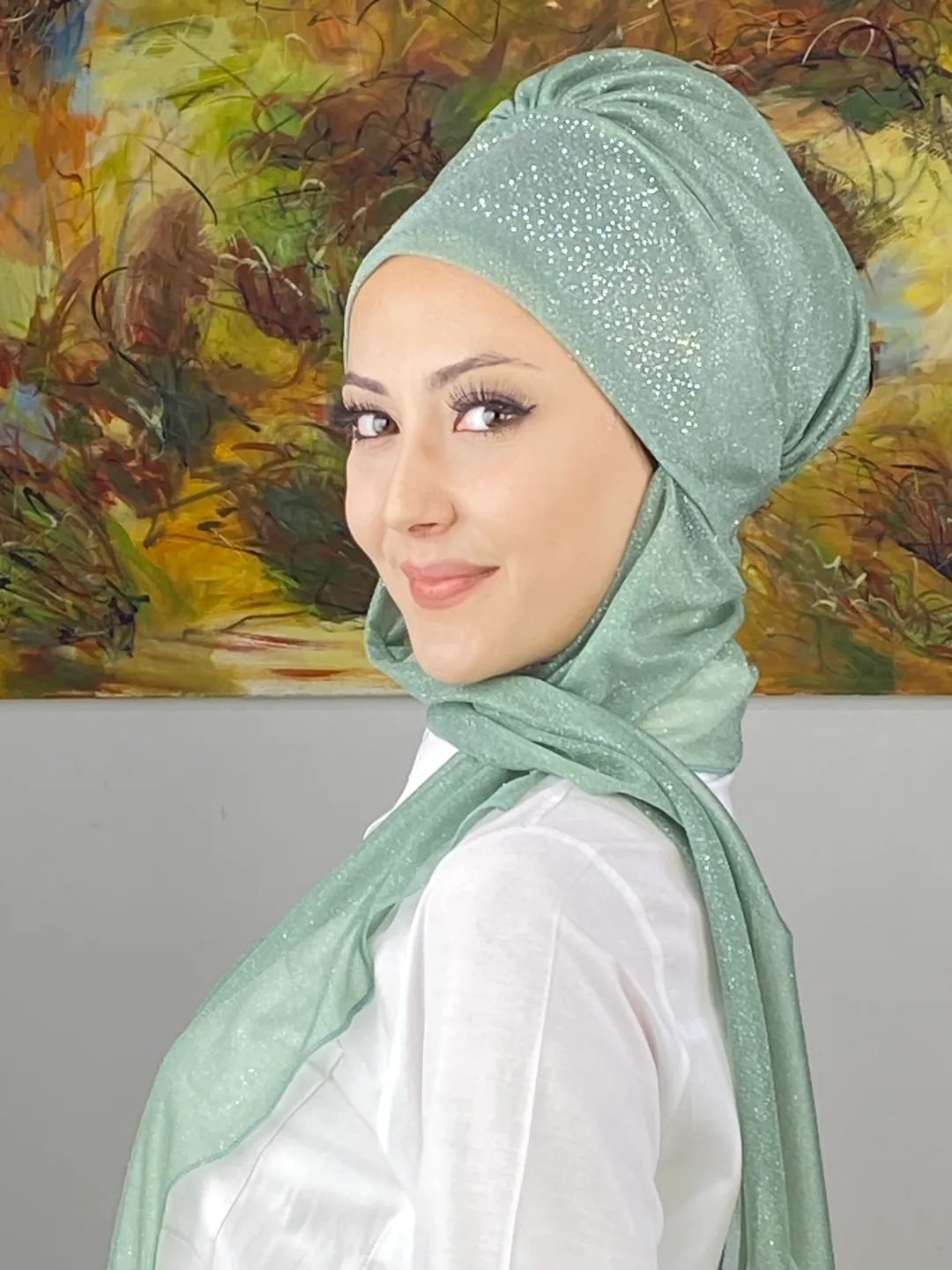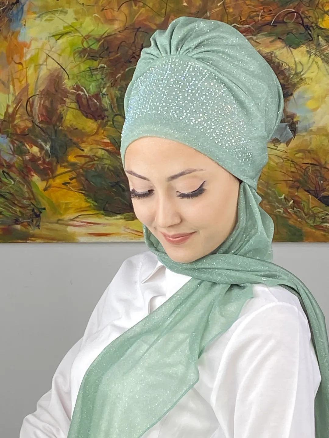 Güneş Model Taşlı Abiye Atkılı Bone Şal – Mint Yeşili ile Tazeliğin Işıltısı 🌿
