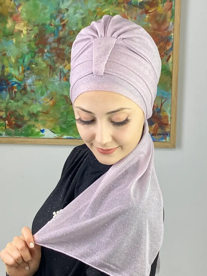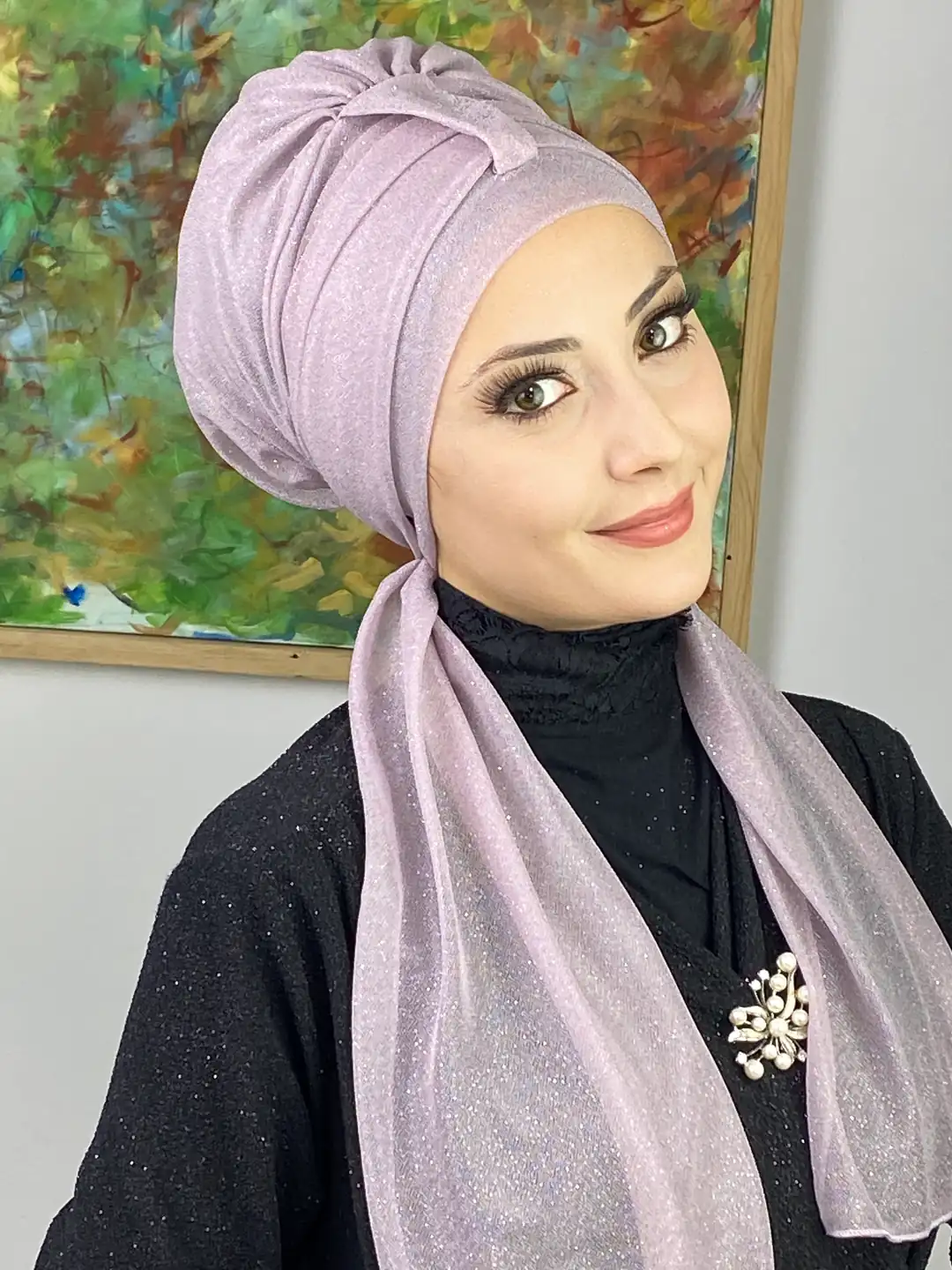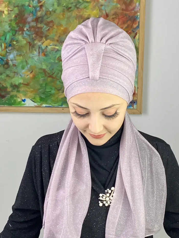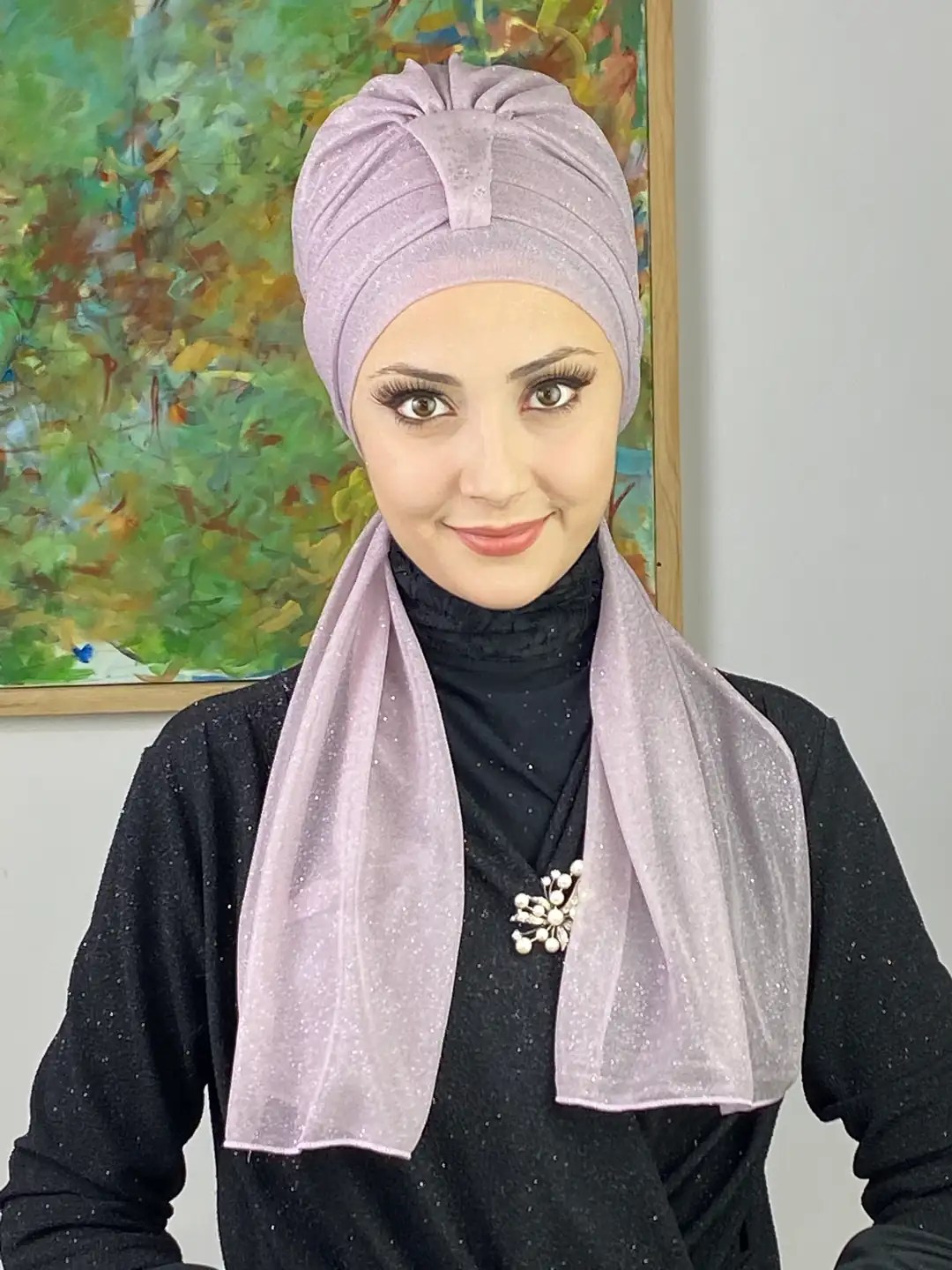 Hürrem Tek Biritli Simli Atkılı Bone – Açık Lila