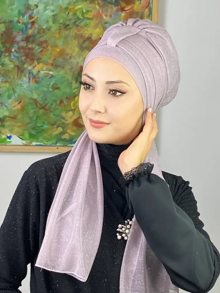 Açık Lila Abiye Bone ile Romantik Zarafet