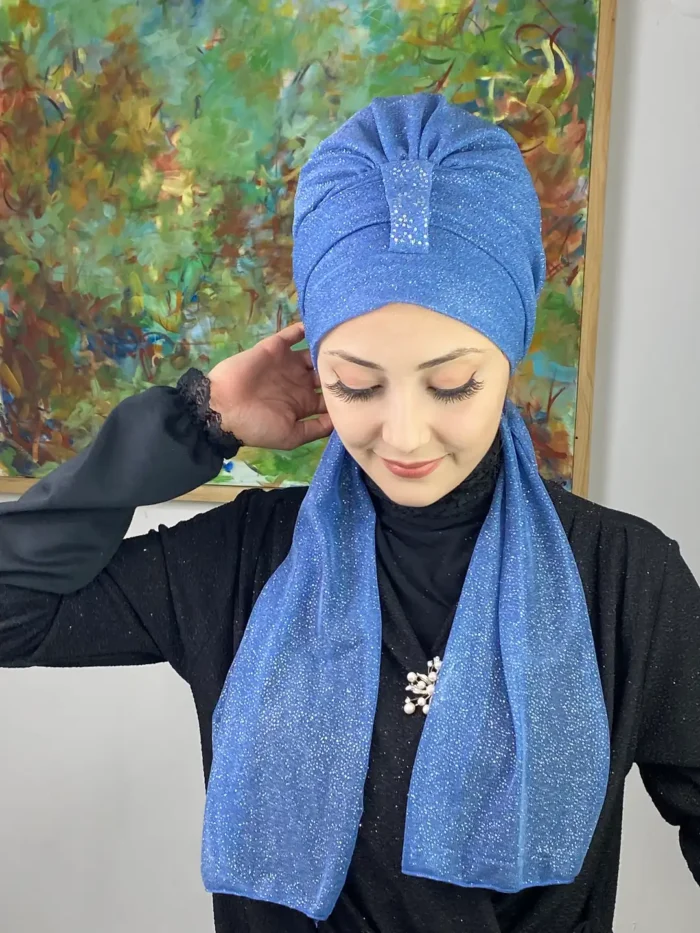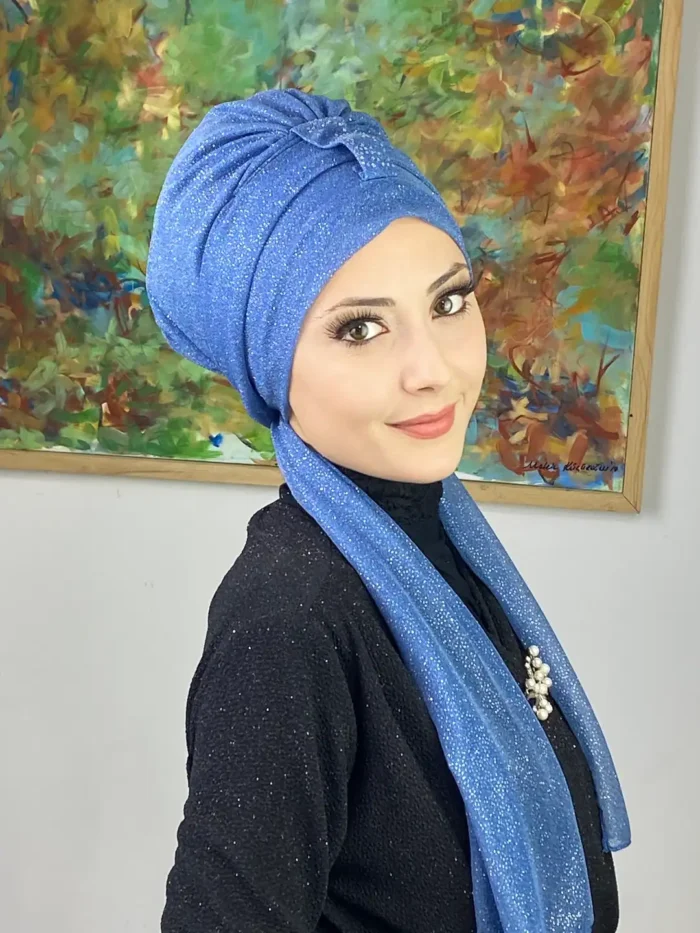 Simli dokusuyla dikkat çeken bu abiye bone, özel günlerde ışıltılı ama sade bir şıklık arayan kadınların gözdesi olacak.