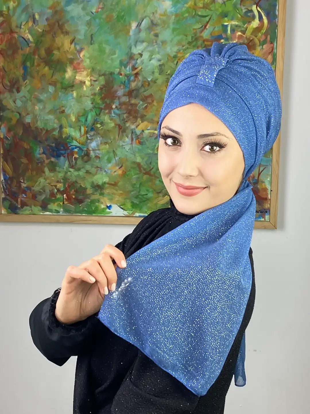 Hürrem Tek Biritli Simli Atkılı Bone – İndigo
