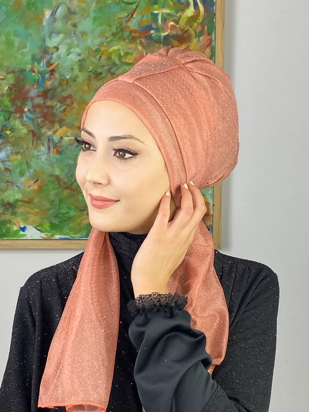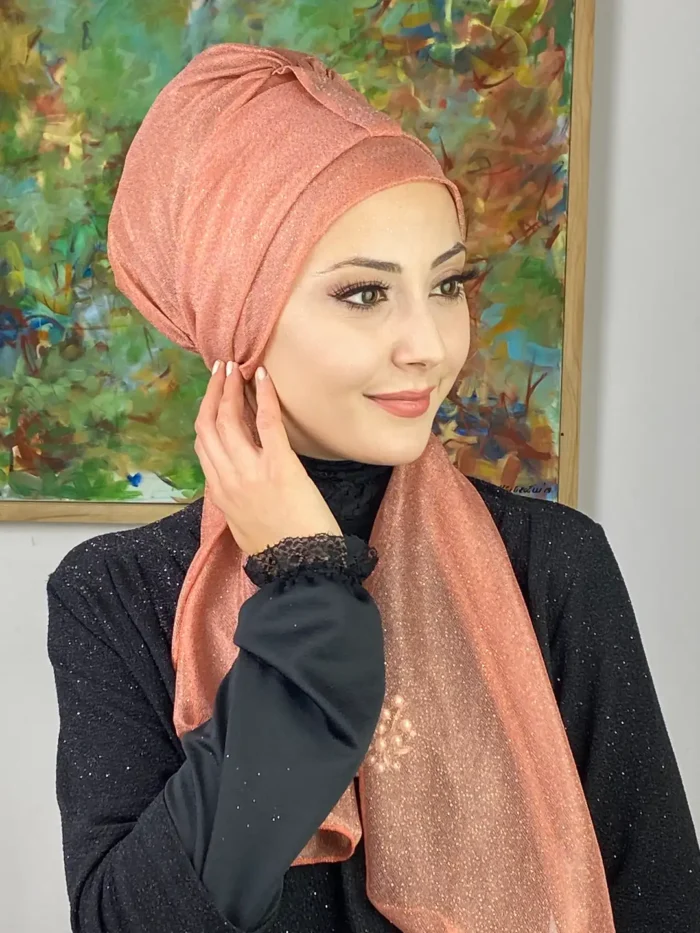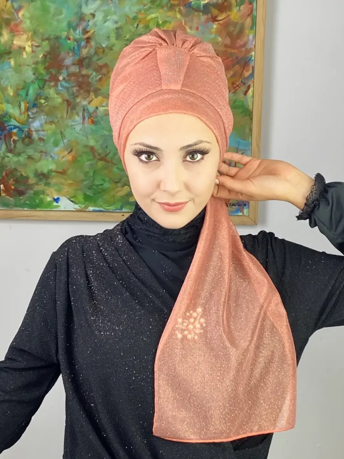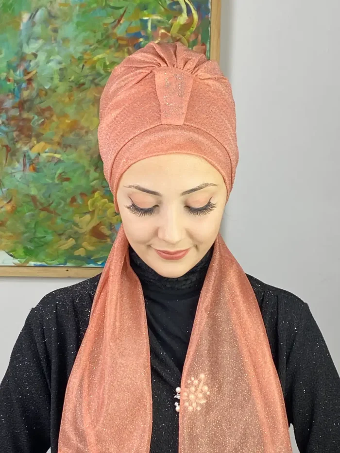 Düğün, nişan, davet veya mezuniyet gibi özel anlarda somon rengi abiye bone, feminen tarzınızı kusursuz şekilde yansıtır.