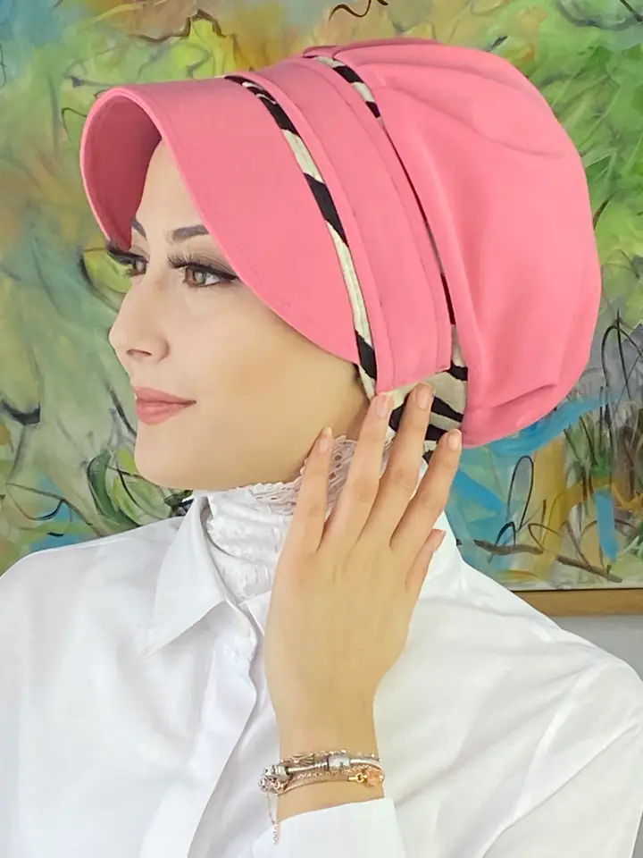 Nazlı Model Tokalı Zebra Desenli Tesettür Şapka – Şeker Pembe