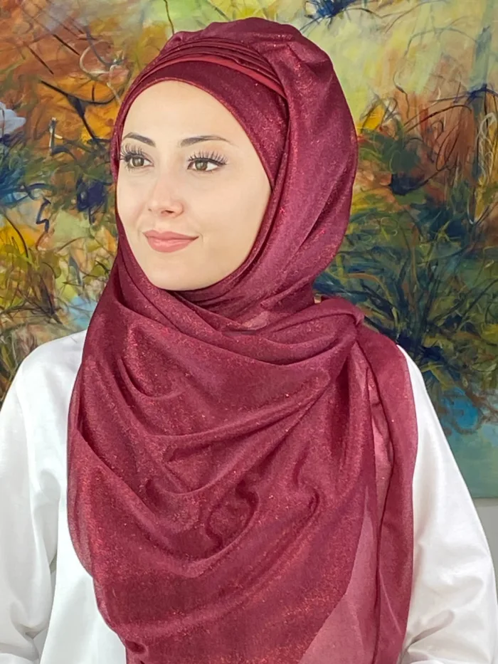 Saray Model Fransız Şifon Drapeli Simli Hazır Şal – Bordo