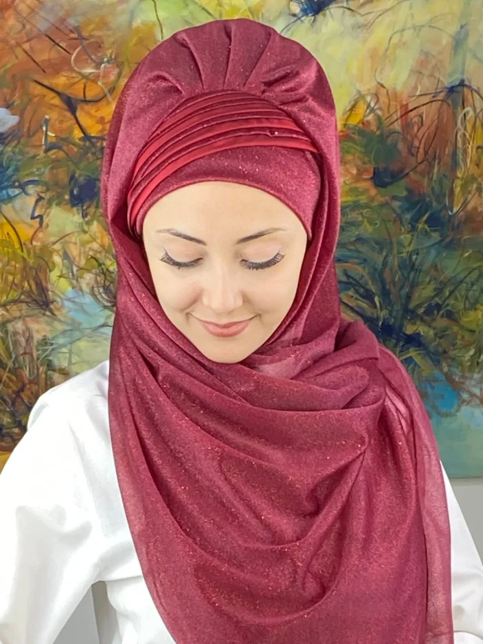 Drapeler yüz hatlarını ön plana çıkarır, şalın formu gün boyu bozulmaz. Hazır bone yapısı pratiklik sağlar; yoğun geçen hazırlık süreçlerinde zaman kazandırır.