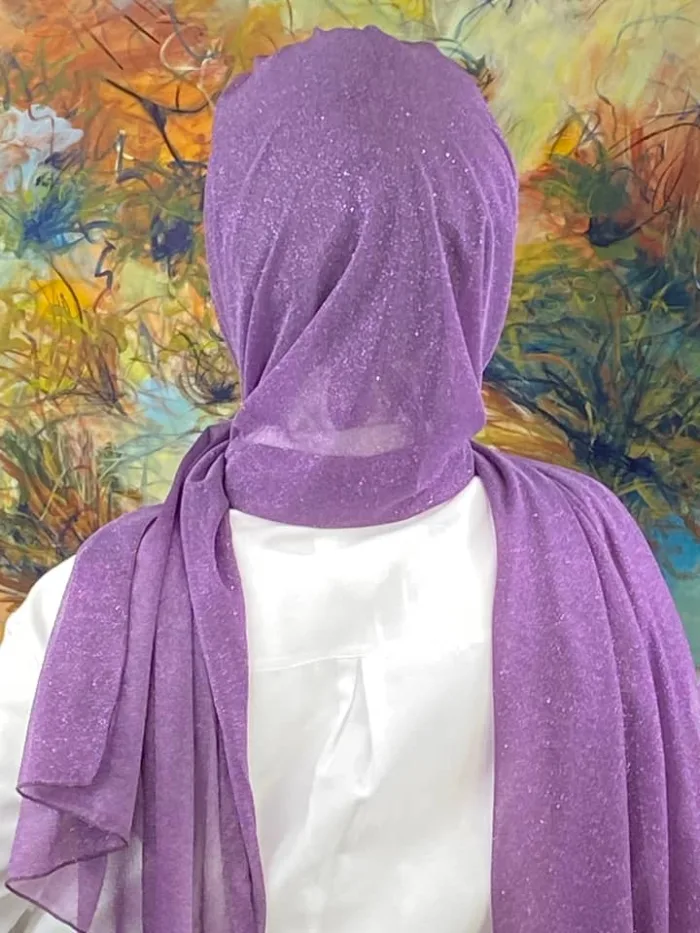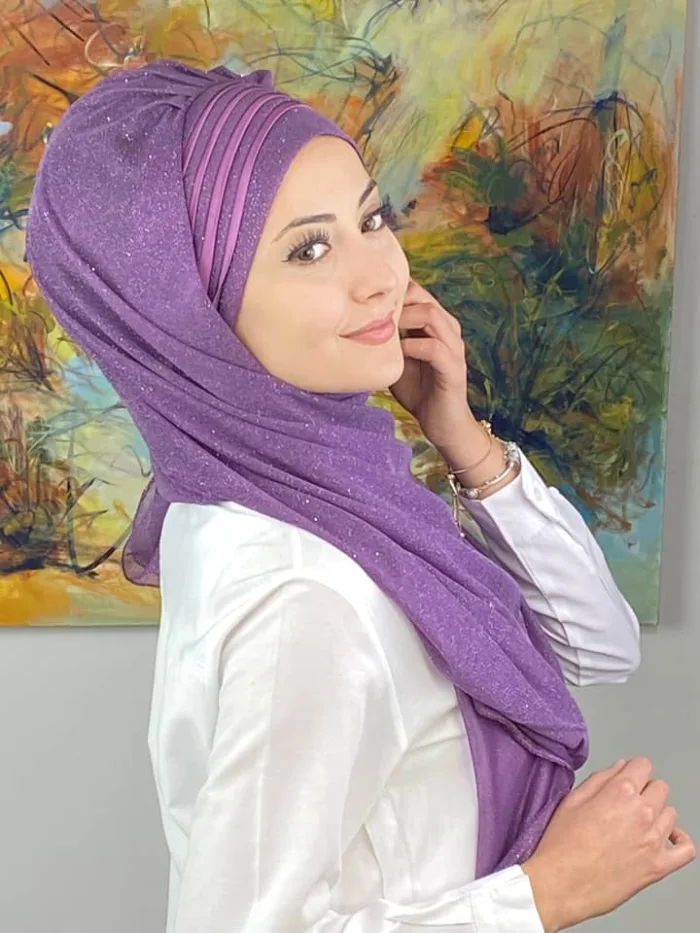 Saray Model Fransız Şifon Drapeli Simli Hazır Şal – Leylak