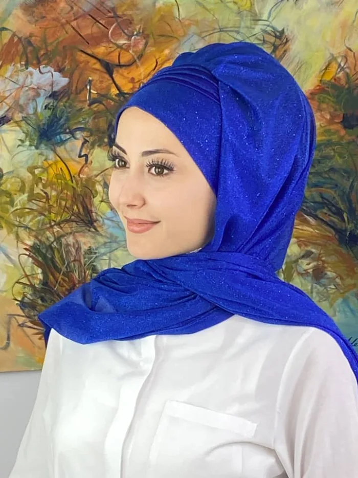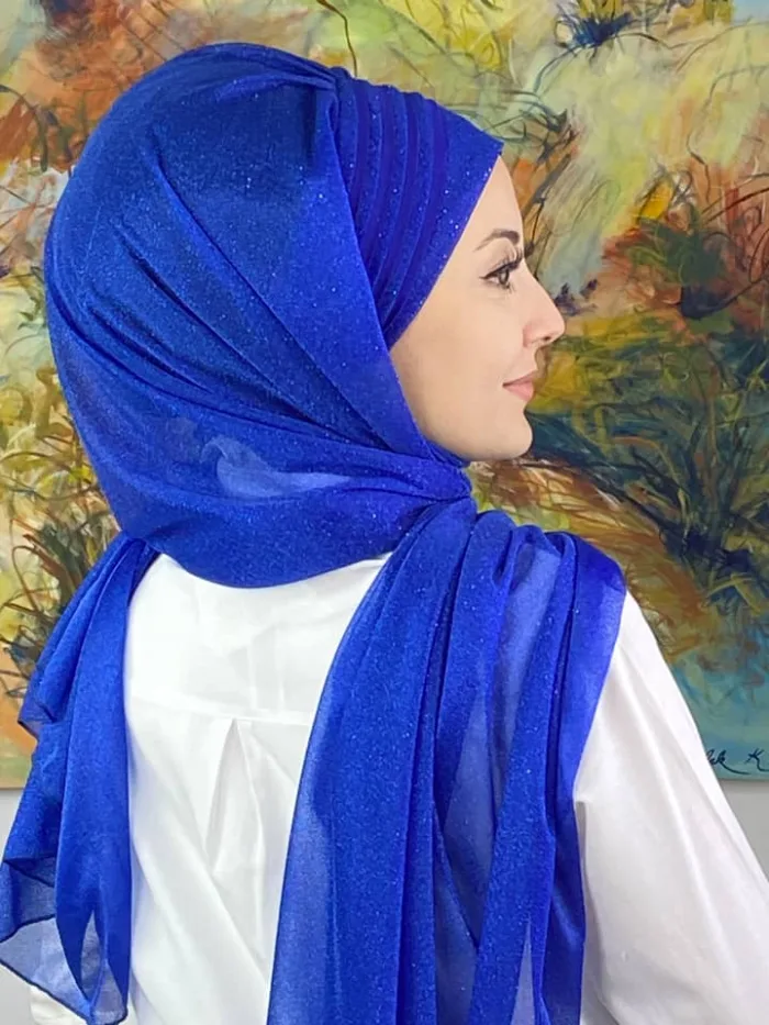 Canlı, enerjik ve modern bir görünüm isteyen kadınlar için ideal. Saks Mavi Saray Model Hazır Şal ile özel günlerde stilinizi ön plana çıkarabilir, zarif ve göz alıcı bir şıklık yakalayabilirsiniz.