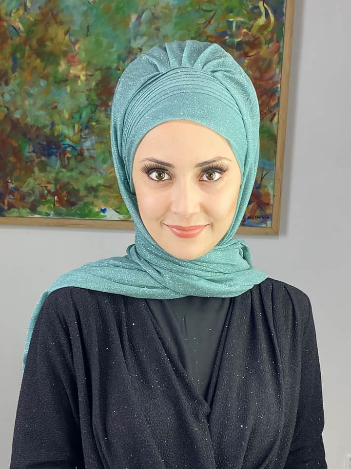 Saray Model Simli Yan Drapeli Şal – Su Yeşili ile stiliniz her zaman taze, her zaman göz alıcı!