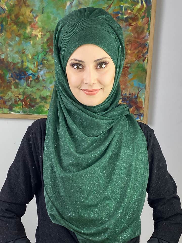 Saray Model Simli Yan Drapeli Şal – Yakut Yeşili