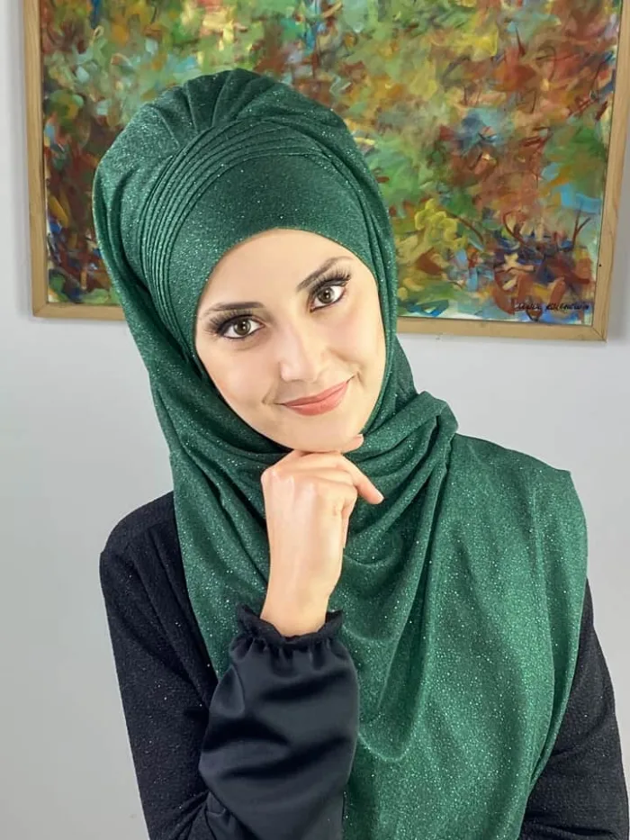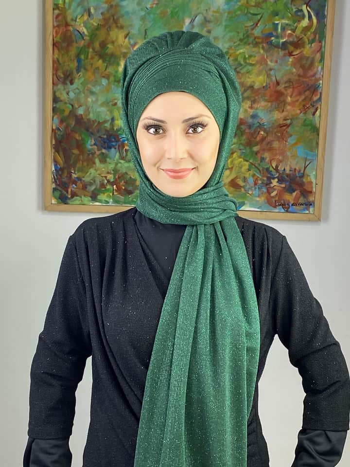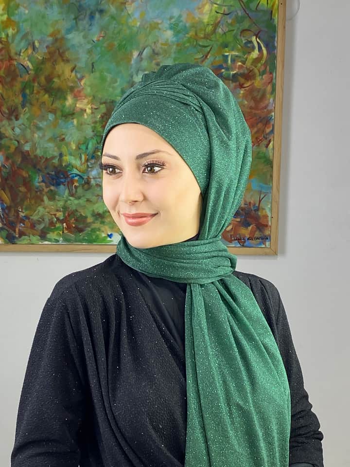 Saray Model Simli Yan Drapeli Şal – Yakut Yeşili, kendini daima özel hissetmek isteyen kadınlar için tasarlandı!